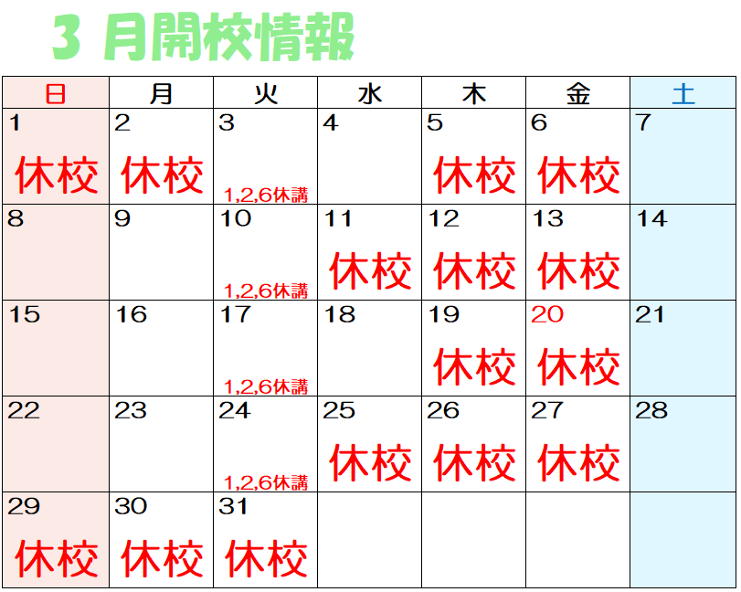 📅 3月の開校について