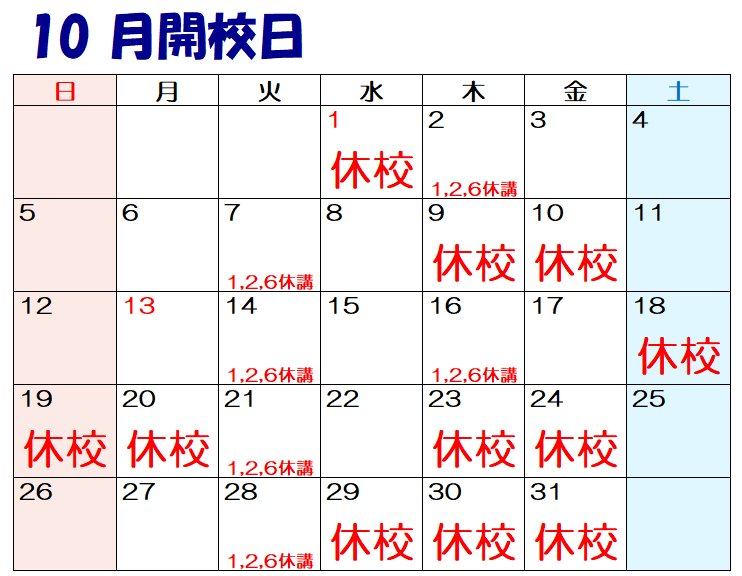 お振替やご予約をされる際は、下記の休校日をご確認のうえご連絡いただけますとスムーズです。