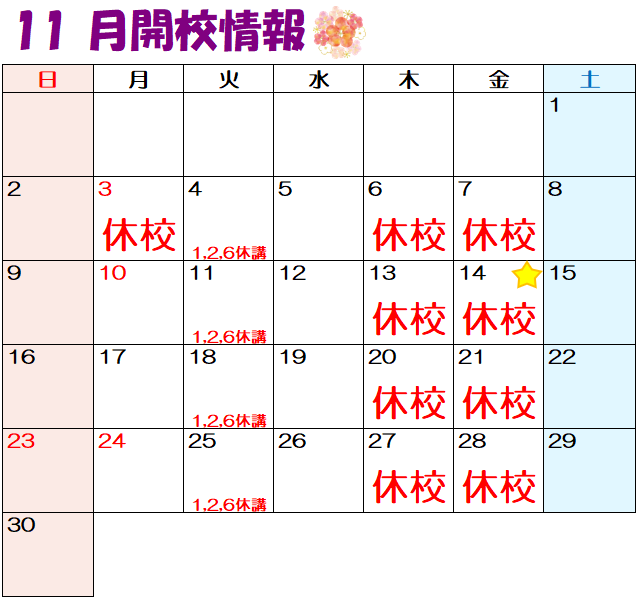 ゆめタウン中津校より、2025年11月の開校スケジュールとお知らせをお届けいたします📅
