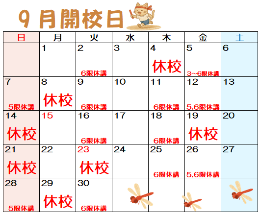 延岡校より、9月の開校スケジュールやお知らせをお届けいたします。