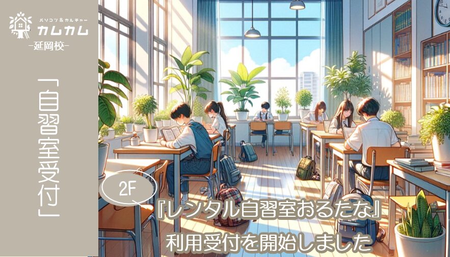 パソコン&カルチャー カムカム 延岡校では、2025年10月より、『レンタル自習室おるたな』への利用受付を開始しました。