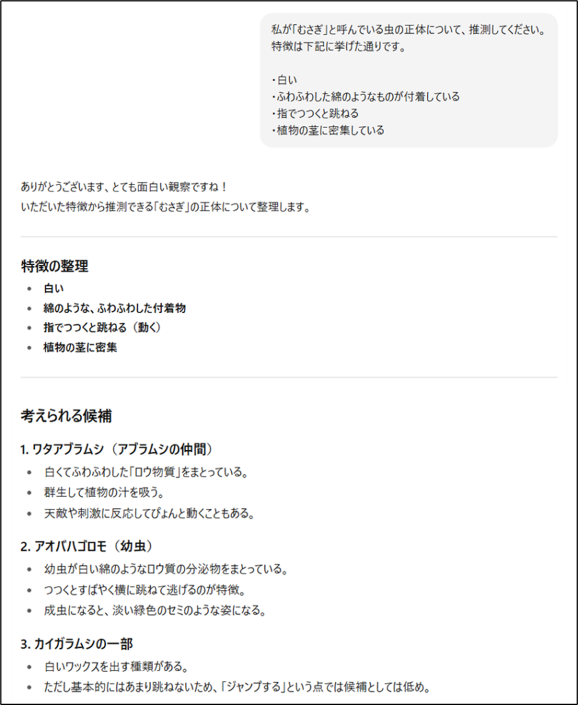 今回は「むさぎ」の正体を探るための力添えをしてもらいましたが、ChatGPTは基本的にどんな内容の話題にも対応します。