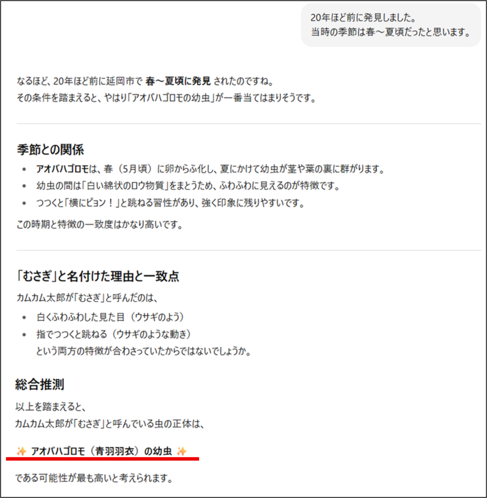 今回「むさぎ」の正体を調べるためにChatGPTを利用しましたが、その際にもあらゆるインターネットのサイトからChatGPTのデータを裏付ける確実な証拠を集めた上で、正体の判明に至りました。