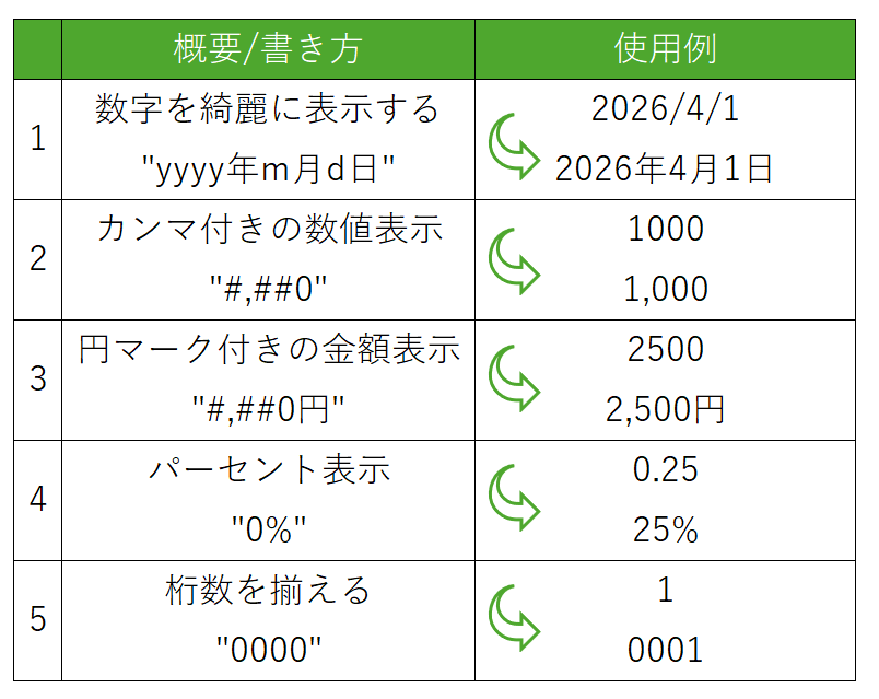 表示形式を自分好みに設定する際は、ユーザー設定から探すよりも、関数を利用した方が効率が良いかもしれません。