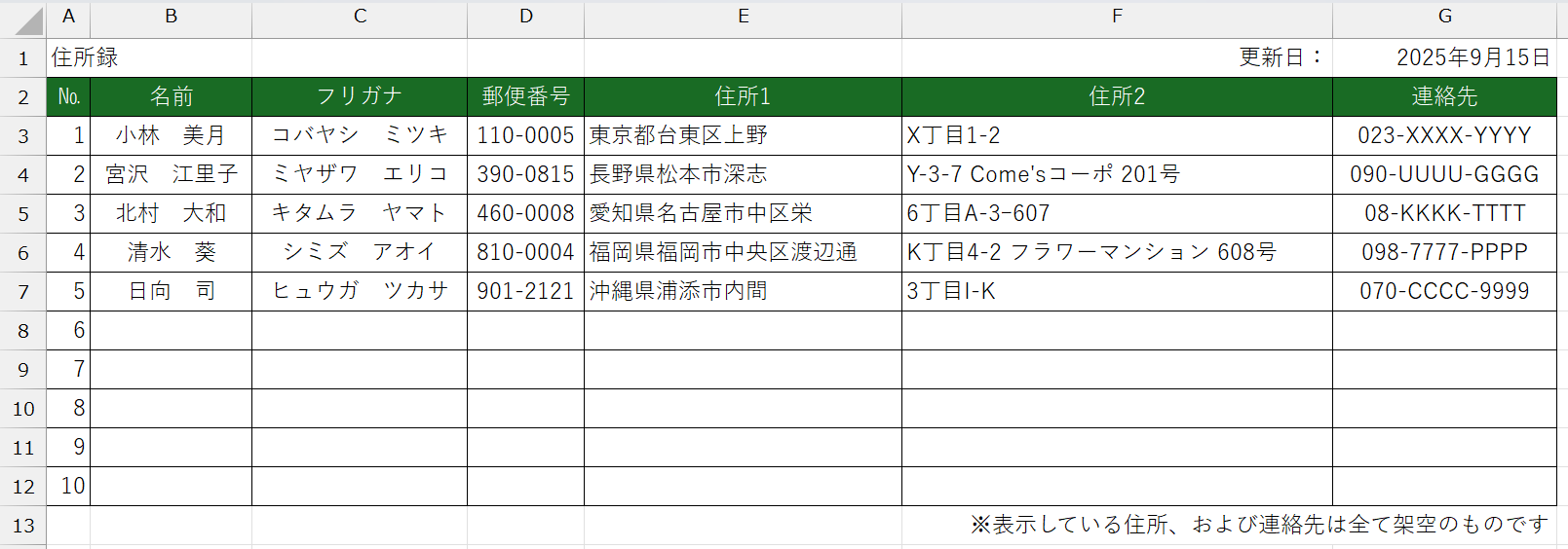 こうしておくことで、シンプルで使いやすく、印刷や他のアプリにも取り込みやすい住所録になります。
