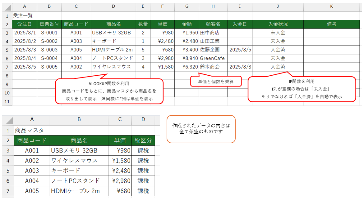 これらを組み合わせるだけでも、実務で役立つ便利な表を作成できます。さらにフィルター機能を用いたデータ抽出や、ピボットテーブルによる集計・分析を活用すれば、大量のデータ処理もスムーズです。